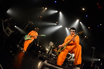 16時をまわった頃には「AREANA STAGE」にPOLYSICSがオレンジのツナギ姿で登場した。「Young OH! OH!」で振り付けをレクチャーしていきなり盛り上げたハヤシは上手下手とステージ上を動きまわり、歯でギターを弾いたかと思うと目にも止まらぬスピードでキーボードを操るアクロバティックなパフォーマンスで会場を釘付けに。暴れまくりながらも一糸乱れぬフミとヤノとのアンサンブルは世界中、どこに行っても楽しませられると思うほどハイパーでエンターテインメントである。