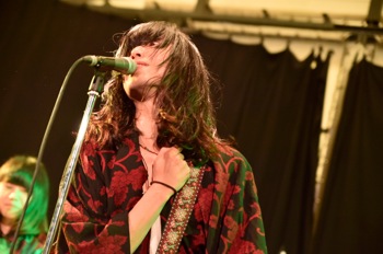 1曲目は「GO」。疾走するグルーヴにのせて佐々木のハスキーな声がエモーショナルに響く。「オーライ! 今日は祭りですよね。ド派手な祭りにしましょうよ」というMCに導かれて「KIDS」「Dancing Zombiez」といったビート感の強いナンバーへ。HISAYOのステップも軽やかに、キレのいいベースフレーズが会場を踊らせた。「(HISAYO)姉さん、TOSHI-LOWさんに会ったとたんに“未亡人みたいだね”って言われてましたね。相変わらずガサツな先輩だと思いました(笑)」と佐々木が楽屋での一幕を暴露して、バックステージのバンド間の距離の近さをうかがわせた。中盤ではアッパーなロックンロールチューン新曲「ベストライド」を披露したほか、「過去の大事な曲を」と「Boy」が演奏されるなど、全8曲は新旧問わずベストな選曲。佐々木にとっては2DAYS出演となるステージを大盛況のうちに締めくくった。