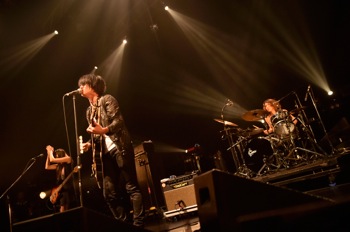 グレッチから柔らかな和音が紡がれると、オープニングナンバーの「新宿」へ。続くインストナンバーの「デリカテッセン」ではトリオならではのスリリングなアンサンブルを聴かせてくれる。「観に来てくれてありがとね」という短いMCのあとは、それまでのギター=浅井健一+ベース=小林祐介といった編成からから、ベース=浅井健一+ギター=小林祐介へパートチェンジ。浅井健一の16ビート混じりの疾走ベースフレーズに小林祐介のヒステリックなギターが絡む「DribbleDaughter」など同編成では3曲がプレイされ、浅井健一ならではのタイム感とグルーヴが前面に押し出されたナンバーに会場が魅了された。