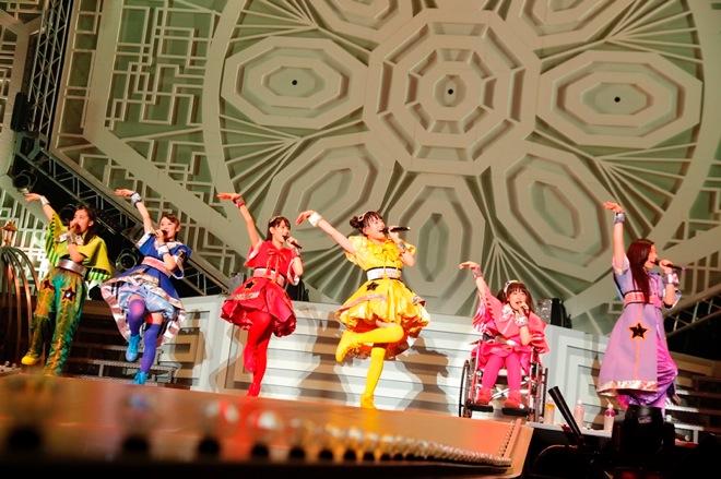 満員御礼。約6000人のファンが詰めかけた会場が暗転し、“ハリウッド”にかけた壮大な音楽が流れ巨大セットにプロジェクションマッピングが映し出されると、早くも大歓声が湧き起こった。炎と共にメンバーが現れて6人がステージに揃うと、「ライブハウス 幕張へようこそー!!」という安藤ゆずの掛け声とともに「そこそこプレミアム」で、ライブは幕を開けた。