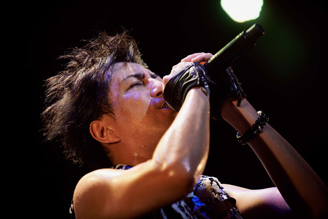 後半は再びアルバム『NOnsenSe MARkeT』からのチューン「東京」。“追い続けた夢はまだ 何処にある… 東京よ”と高く挙げた左手で天をつかむような仕草で歌うガラ。サビではオーディエンスが高くジャンプする。結生のコーラスがガラのメロをサポートする。ステージと会場が一体となり一つの大きな波を形成する。