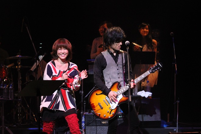ギターリフが鳴り響く中で、タンバリンを片手に、ユニオンジャックをあしらった衣装の渡瀬マキ。彼女といえば、もちろんリンドバーグ。90年代の日本の音楽シーンを彩ってきた数多くのヒット曲の中から「君のいちばんに」と、出演者を呼び込んでの「もっと愛しあいましょ」を歌唱。20代以下には新鮮に聴こえるかもしれないポップチューンは、30代以上には懐かしのヒットチューン。客席も一緒になって、誰もが笑顔になりながら振り付きで楽しむステージが繰り広げられる。