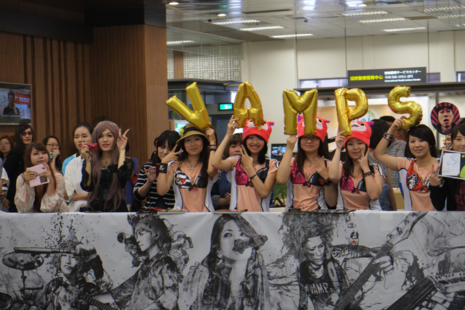 台北は小雨混じりの天候となっていたけれど、空港内はVAMPSを一目みようと駆けつけたファン達の熱気に溢れかえっていた。手書きの大きな横断幕を掛け、VAMPSのアルファベットを手に持って、にこやかにメンバーを待つ台湾ファンがキュートだ。メンバーが登場し車に乗り込むまで数分にも満たないあっという間の出来事だったが、キラキラと目を輝かせながらメンバーを見守る台湾ファンは、礼儀正しく騒ぎも起こさない若者たちだった。