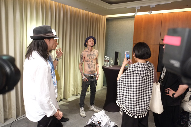 <JAPAN NIGHT>台北公演を翌日に控えた5月22日、夕方19時より台湾の某ホテル・スイートルームにてVAMPS、the GazettE、The BONEZが一堂に会し、現地主力メディアを招いてのレセプションパーティが催された。
