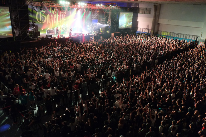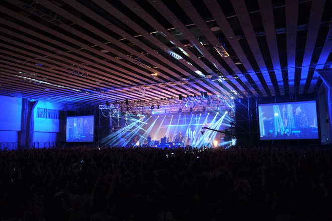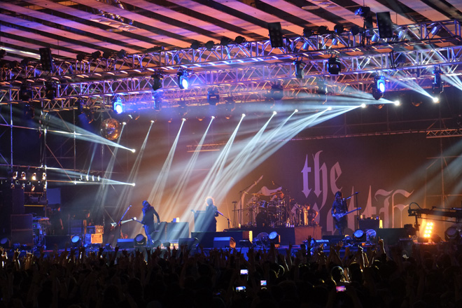 台湾現地時間19:05、ステージにthe GazettEが現れると会場は絶叫に包まれた。PAからのサウンドも爆音だが、会場に響く生声の大きさに耳がやられそうだ。