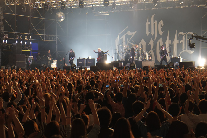 拳を突き上げ腕を振り、髪を乱してヘッドバンギング、跳ねて踊って声を上げて、会場自体がうごめく巨大なゼッターになったかのような体を見せている。