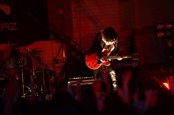 「もっともっと暴れてくれますか!?」と叫び、後半はみんながタオルを振り回すライブのキラーチューン「灼熱」と、DAIGOがアグレッシブに動きまわって歌い、AKIHIDEがギターのネックを空に向かって掲げ、SHINPEIがシャウトした「DESTROY CRASHER」で爆発し、本編は終了。陽が暮れる中、エンディングに合わせるように一羽の鴉がステージ前を横切って飛んでいったのも、野外ならではのドラマだった。