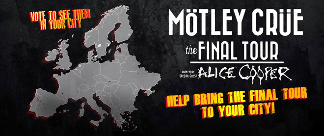 モトリー・クルーが火曜日(5月26日)、<Final Tour>でヨーロッパのどの都市を訪れるべきか、ファンからのリクエストを受け付けるソーシャル・メディア・キャンペーンを開始した。彼らは来月、スウェーデン、オーストリア、UKのフェスティヴァルでパフォーマンスするが、ヨーロッパではまだ<Final Tour>は行われていない。