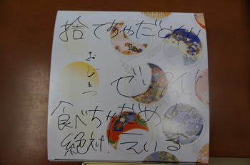 ──あとさっき楽屋で見つけたんですけど、お弁当に「食べちゃダメ。ゼッタイ。捨てないで」って書かれてましたけど。あれは何なんですか?