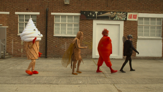 Mr.OKの旅の途中で彼はさまざまなキャラクターに出会うのだが、実はそのキャラクターを演じているのがブラーのメンバーだ。Mr.Creamをデイモン・アルバーンが、Mr.Brownをグレアム・コクソンが、Mr.Redをアレックス・ジェームズが、そしてMr.Blackをデイヴ・ロウントゥリーが演じ、色鮮やかなゲームの世界の冒険が続いていく。