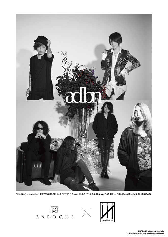 2015年5月に新体制となって初のアルバムをリリースしたBAROQUEと、2015年結成10周年のメモリアルイヤーとなるTHE NOVEMBERSによる全国4箇所を巡る2マンツアー<adbn>(あだばな)が開催決定となった。