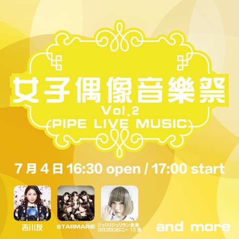 まず7月4日、台湾・台北にあるPIPE Live Musicにて、吉川友はSTARMARIEとライブイベント<女子偶像音楽祭>に出演する。このイベントは日本、台湾のアイドルが対バン形式で行なうもので、台湾からはジュリリジュリラン未来ゴロゴロコロニー13世らが出演する。
