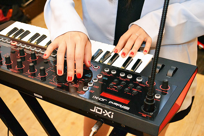 Sachiko:小ぶりでかわいいと思いました。いい感じにアナログな雰囲気で、レトロな配色もいいし、愛着がわきそうですね。音も好きです。レゾナンスの効いた音とか、ギューンってオクターブ上がっていくような音とか、シンセらしい音が好きでよく使うんですけど、「JD-Xi」は私が今使っているFA-06と同じデジタル・シンセのエンジンなのに、それよりシンセっぽい音が多く入っていて気に入りました。存在感のある音がいいと思いました。