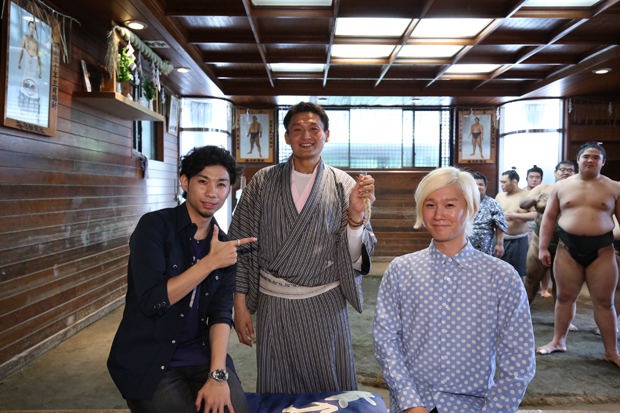 今回はニューシングルのタイトル「キミに会いたいな」になぞらえ、貴乃花親方に会うべく中野区にある貴乃花部屋へ訪問した吉田山田。まずは稽古風景を見学していたが、真剣な姿と眼の前で繰り広げられるぶつかり稽古の迫力に思わず緊張してしまう。