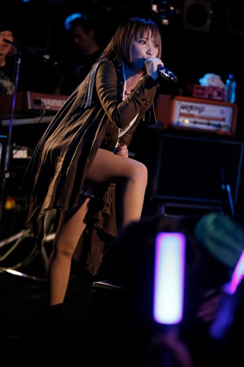 セットリストはこれまでリリースされた数々のシングル曲をはじめ、盛り上がらずにはいられないナンバーの揃い踏み。藍井エイルの歌声は、どこまでもクリアだ。真っ直ぐに伸びるハイトーンはもとより、圧倒的なパワーで押しまくる中低域から宙を舞うファルセットまでレンジは広い。その美声を武器に、正確なリズムとピッチを持って次々とタイプの異なるナンバーが繰り出されるのだから、フロアは圧倒されながらも熱狂度を増していく。とりわけ「サテライト」では、流麗なギターソロと藍井エイルのフェイクが溶け合って、あまりにも美しいハーモニーが描き出された。