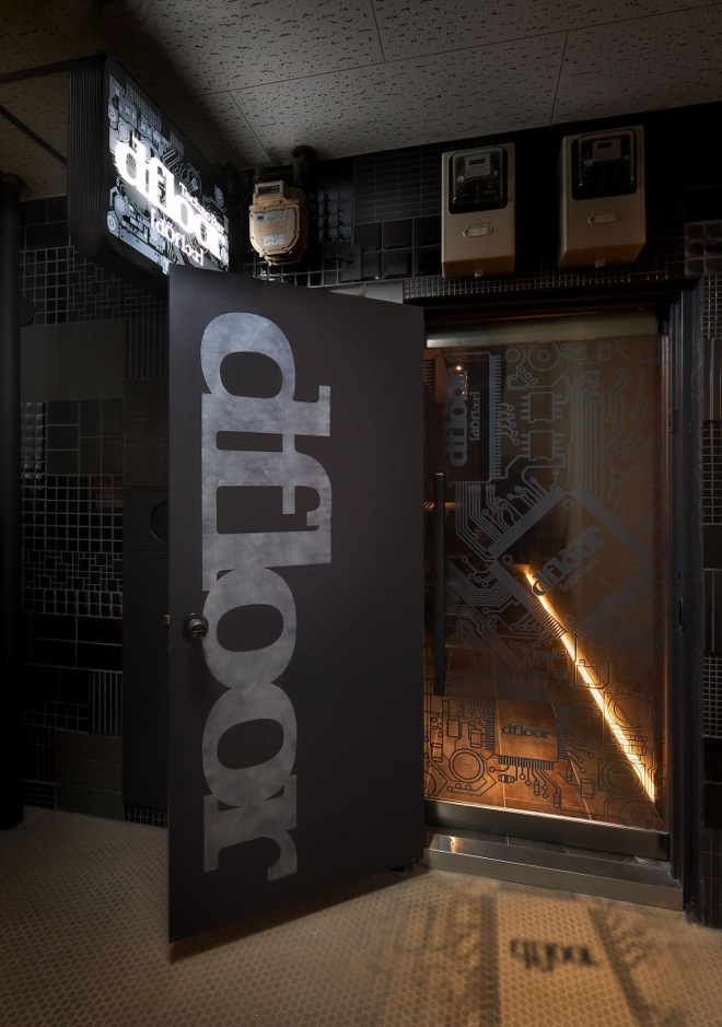 テクノミュージックBAR「ドフロアー」は、ハイエンドな音響と上質のカクテルでゆっくりとテクノが聴ける、オーセンティックなタイプのBARだ。少し場末な雰囲気のビルの中に所在するこのお店の店内は、無機質でありながらも洗練された内装がほどこされ、日常の現実から離れた異空間を演出している。
