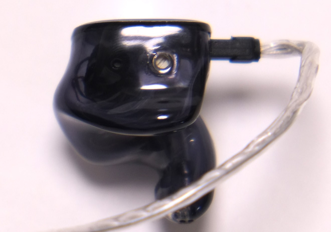 使いこなしのポイントは、シェル上部にセットされている低域量をコントロールする半固定ポリュームのセッティングにある。昨今では切り替えスイッチや可変抵抗で低域の量を変えられるモデルも多くなってきたが、LCM-BD4.2の場合、そのセッティング幅の大きさが尋常ではない。つまみを絞り込んだ8時位置では、おそらく低域を司る2つのダイナミックドライバーの出力がゼロになると思われる。低域楽器のアタック成分は中域から高域まで広範囲に及ぶので、その存在自体が消えることはないのだけれど、いわゆる重低音が全くなくなってしまうので、なんとも味気ないサウンドになる。語弊があるかもしれないが、ちょうど高域偏重の1ドライバー・フルレンジサウンド…エティモティック・リサーチのER4Sをリッチにしたようなバランスと言った感じだろうか。