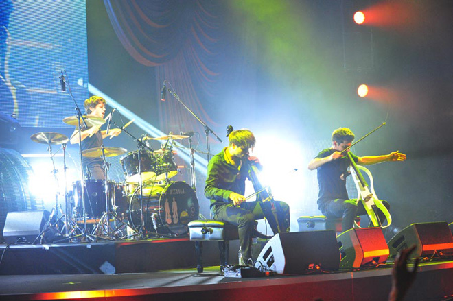 彼らのトレードマークである「イケメン超絶パフォーマンス」はデビューから4年、念願だった世界各国のステージにたちながら一層の進化をとげ、いまや至高のエンタテイメントの域で炸裂する唯一無二のチェロ・パフォーマンスになった。2人のチェロで世界の人々とつながる宇宙、という意味を込めた2015年に発売された最新アルバム『チェロヴァース』から、先日最新ミュージックビデオで公開されたばかりの映像をバックにマイケル・ジャクソンの「ゼイ・ドント・ケア・アバウト・アス」、ルカの大好きな映画<インセプション>から「モンバサ」、アンコールで最高潮の盛り上がりに達した「トゥルーパー」を演奏、チェロという楽器の可能性を追求した新境地をステージでも存分にみせてくれた。