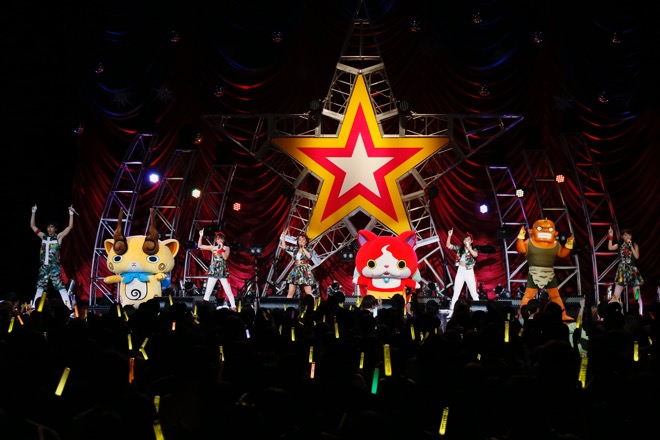 まずは「ダン・ダン ドゥビ・ズバー!」でブリー隊長と会場が一体となってトレーニング。そして子どもたちの大喜びしている声があちこちから聴こえる中での「ようかい体操第二」と「ようかい体操第一」。ようかい体操のお兄さん・高野洸もさることながら、コマじろうが実に俊敏なダンスを見せて客席を楽しませていた。