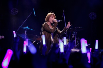 ライブ冒頭のMCで藍井エイルはこう胸の内を語った。さらには「もっともっと歌に思いを込めて全身全霊、みんなに恩返しをしていきたい。言葉ではうまく伝えきれないので歌で表現させてください!」と想いをステージ上で爆発させていく。