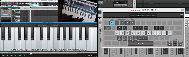 ▲仮想キーボードは鍵盤そのものをクリックまたはタッチするモード(左)と、PCのキーボードを鍵盤に見立てて弾くモード(右)の2種類。