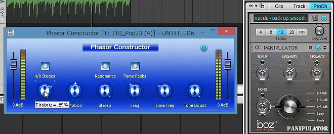 ▲ユニークかつ強力なフェイザーPhaser Conductor(左)とProChannelモジュールのPANIPULATOR(右)。