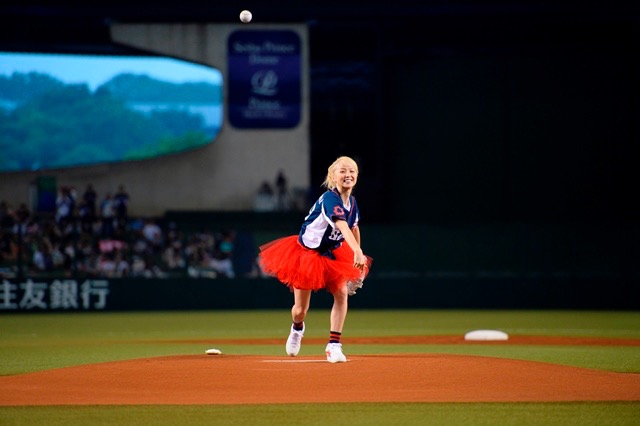 E-girlsから初めてソロデビューするDream Amiが、7月3日、埼玉県所沢市を本拠地とする西武プリンスドームフィールドの対千葉ロッテマリーンズ戦で、人生初となる始球式を務めた。