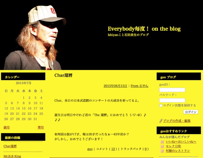 盟友Charとのアコースティックユニット・BAHOでも知られていた石田長生。彼の生前最後の更新となったブログは、Charの還暦を祝う内容だった。