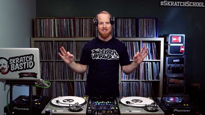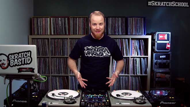 僕の名前はSkratch Bastid(スクラッチ・バスティード)。今回はDJのハウツーレッスンをシリーズ展開して、僕が15年間のDJプレイを通じて培った数々のスキルをみんなに紹介しようと思う。ミックスのような初心者向けの基礎から、上級者向けのスクラッチ・テクニックまでのすべてを僕のスタジオから解説する。このシリーズに登場するスキルはどの音楽ジャンルでも役に立つと思うよ。 ではさっそくレッスンを見ていこう。教材映像を見て何か質問があれば、ハッシュタグ(#SkratchSchool)をつけて連絡してくれれば回答するよ。DJブースで会おう!