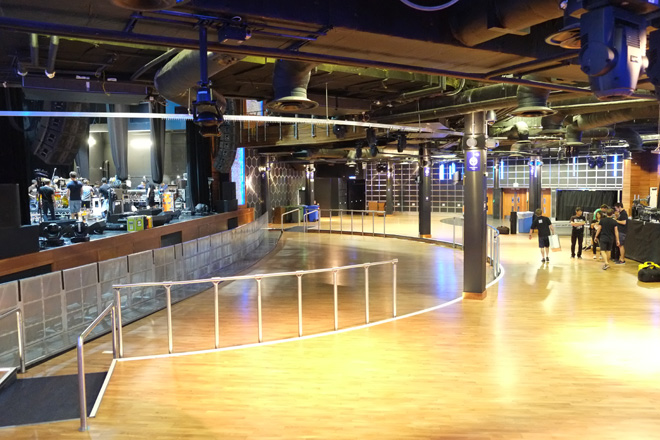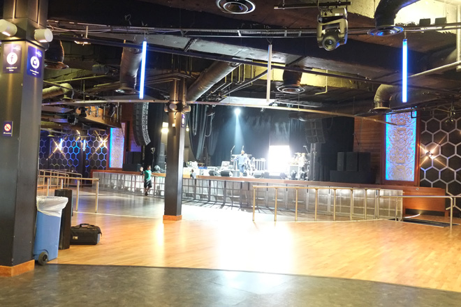 <JAPAN NIGHT>ロンドン公演の開場となっているindigo at The O2の会場では、サウンドと照明のチェックが着々と進んでいる。各バンドの機材も全て搬入され、セットアップが進んでいる。