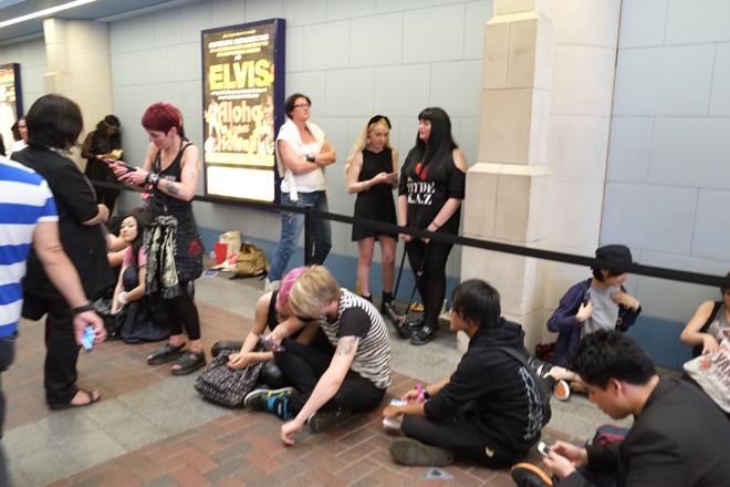<JAPAN NIGHT>ロンドン公演を楽しみに訪れたオーディエンスたちは、会場の横でおとなしく列をなしている。隣の会場で行われている<ハイパージャパン>のコスプレイヤーにも負けないクールなVAMPSファンを発見、思わずバチリ。気合も充分だ。開演までもうまもなく。初の<JAPAN NIGHT>ロンドン公演がついに幕を開ける。