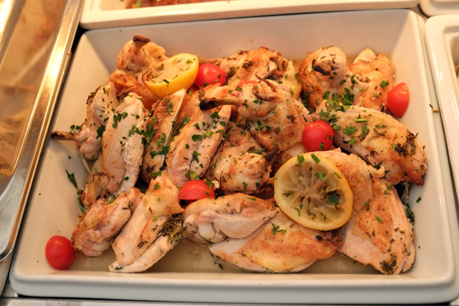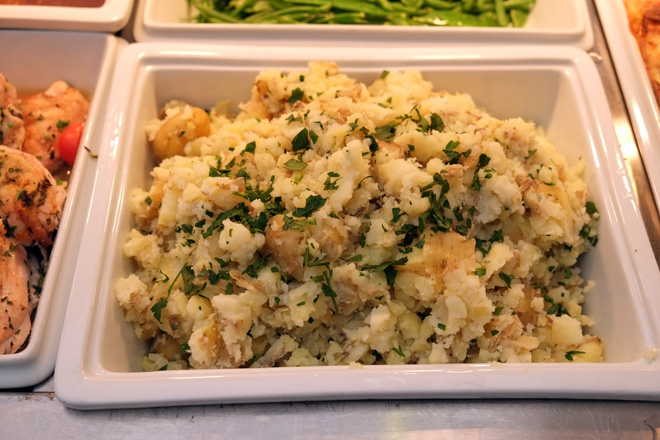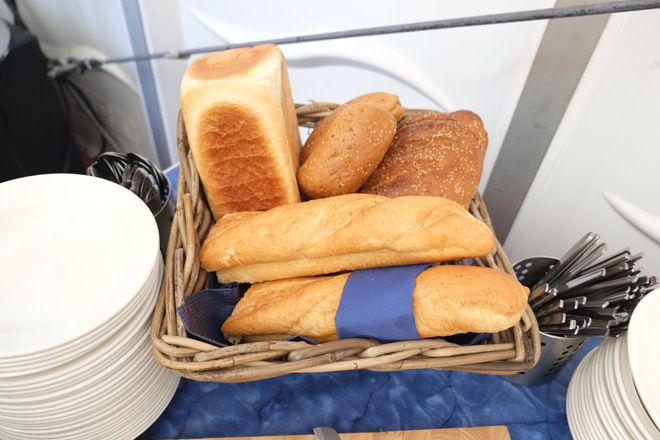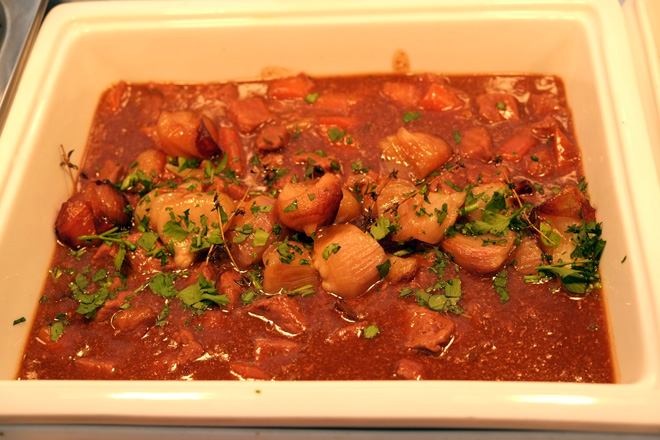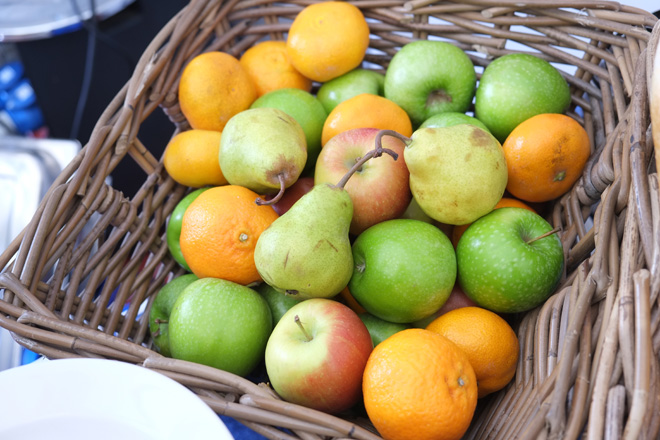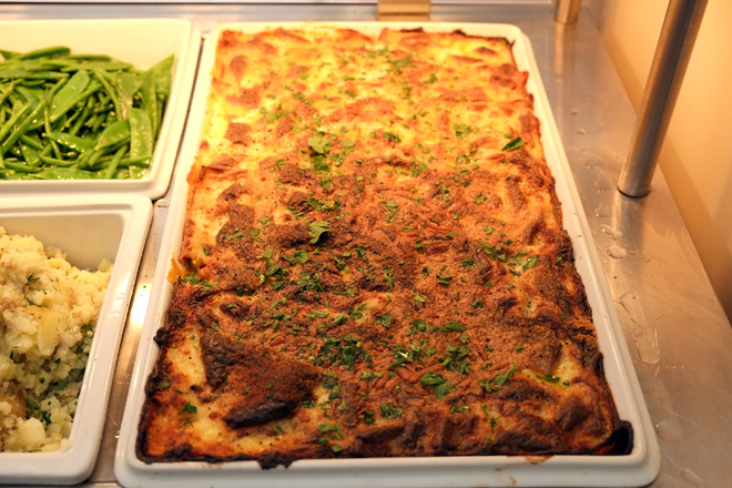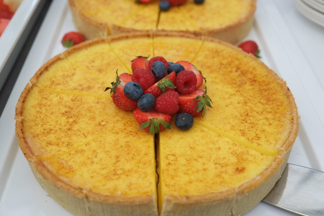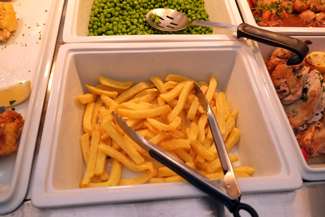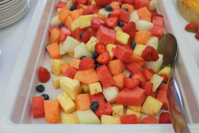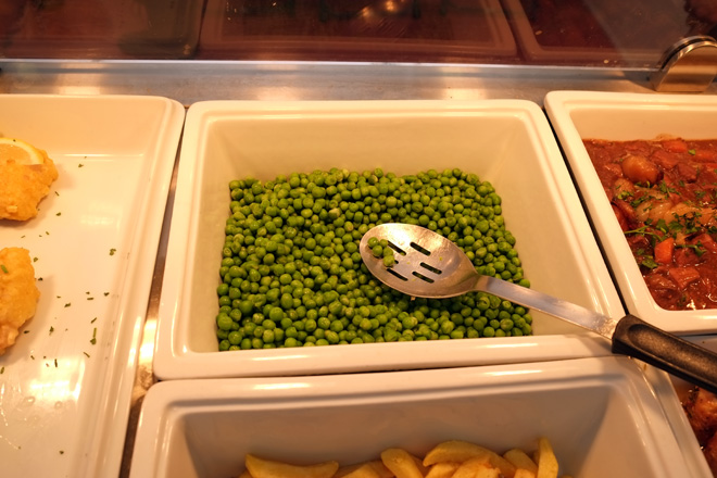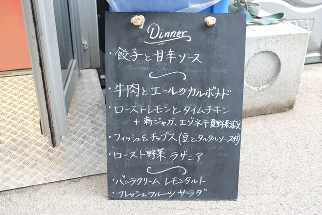 ラザニアやローストレモン&チキン、フィッシュフライに餃子…というメニュー。そして大量グリーンピースとフルーツ類。バニラクリームレモンタルトが美味しそう。これで鋭気を養ってロンドン公演本番に突入だ。