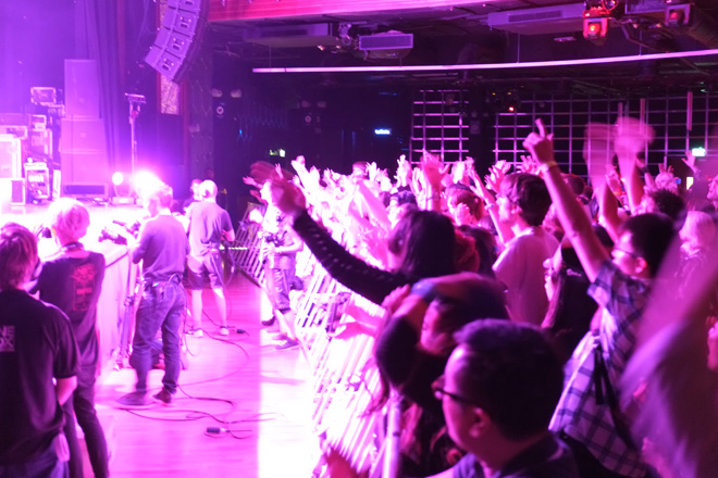 千切れんばかりに振り上げられたオーディエンスの腕も、ミドルテンポでは大海原の波のごとく大きなうねりとなってバンドに返されていく。この日のロンドンの夜は、ひときわ熱い濃厚な交流が交わされていた。この街が持つ深く長く刻まれたロックの歴史に、今まさしくVAMPSのパフォーマンスが溶け込んでいくようだった。