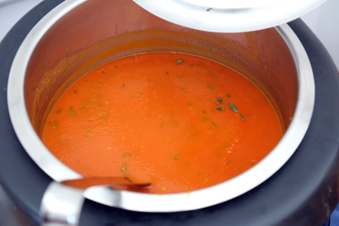 腹が減っては戦はできぬ。ということで、二日目のお昼はボロネーゼパスタやサラダが用意されていた。トマト&バジルスープも美味しそう。