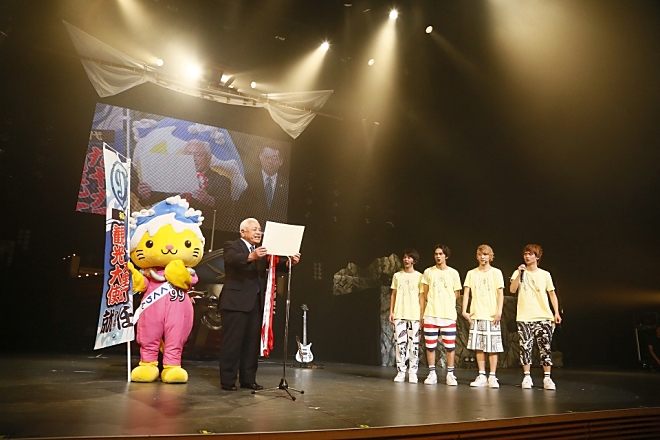 4人が一度ステージから去るも、会場からは悲鳴にも近い歓声が鳴り止まない。アンコールで登場したDISH//にはサプライズが待ち構えていた。突如として明かりが落ち、戸惑うDISH//メンバーの前に登場したのは九十九里町の町長と、公式キャラクター「くくりん」。町長の口から、DISH//が2015年度、初代九十九里町の観光大使に任命されたことが発表された。
