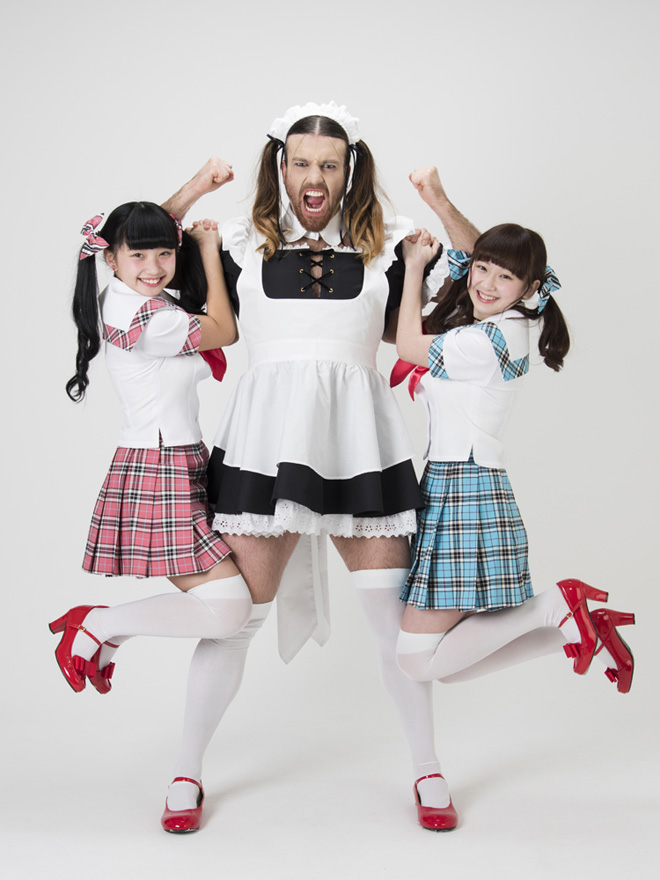 LADYBABYは2015年3月に結成された、ヒゲ女装外人のレディビアードと、金子理江、黒宮れいの3人からなるアイドルグループで、7月29日にミュージックビデオDVD付きのファーストシングル「ニッポン饅頭」をリリースし、ライブやフェスにも参加していくという。レディ・ビアードは、歌って踊って破壊する「カワイイコア」パフォーマーとして、2013年に彗星のように現れインターネットを中心に話題となった人物だ。今ではテレビ番組や海外イベントからも多数声が掛かる永遠の5歳である。