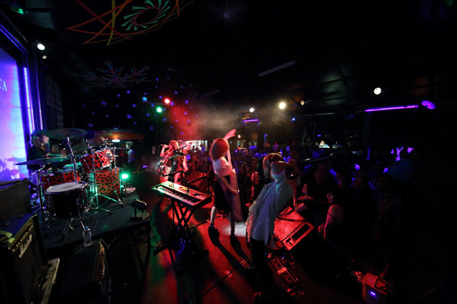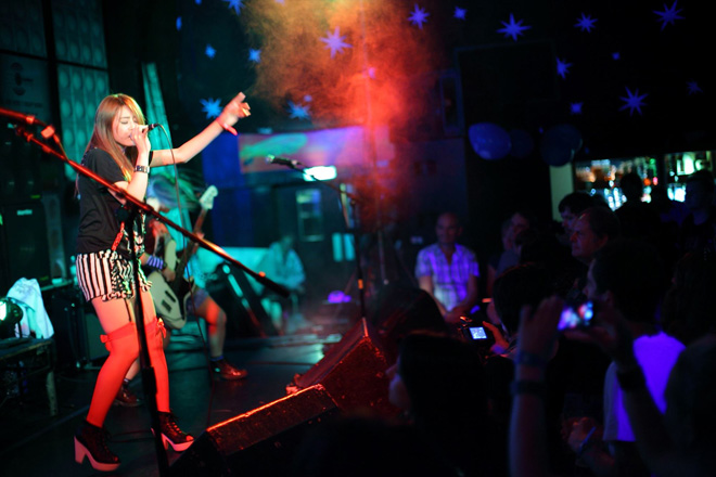 会場は熱気あふれるUKロックファンで埋め尽くされ、ライブスタート。まずはCircadian Rhythmが登場し、アコギとループマシン、男女2人のボーカルによりチルアウトな空間が作り出されていく。続くThis is Echoは、タイトなドラムの上で緩急使い分けるポストロック的なサウンドを紡ぎだすギター、女性Voがとてもチャーミングなバンドだ。そしてEcho Treeは、跳ね系の16ビートでファンキーなサウンドを聴かせてくれる。そして次に、スタジオ・レコーディングにてHysteric Lolitaと時間を共有したJOANovARCが登場。8ビート主体の飾りっ気の無いストレートで骨太なロックサウンドでフロアを圧倒、「ロックはこうやるんだ!」と言わんばかりに畳みかけ、ジャパニーズ有名ロックバンドのカバー曲まで飛び出し会場を更にヒートアップさせた。