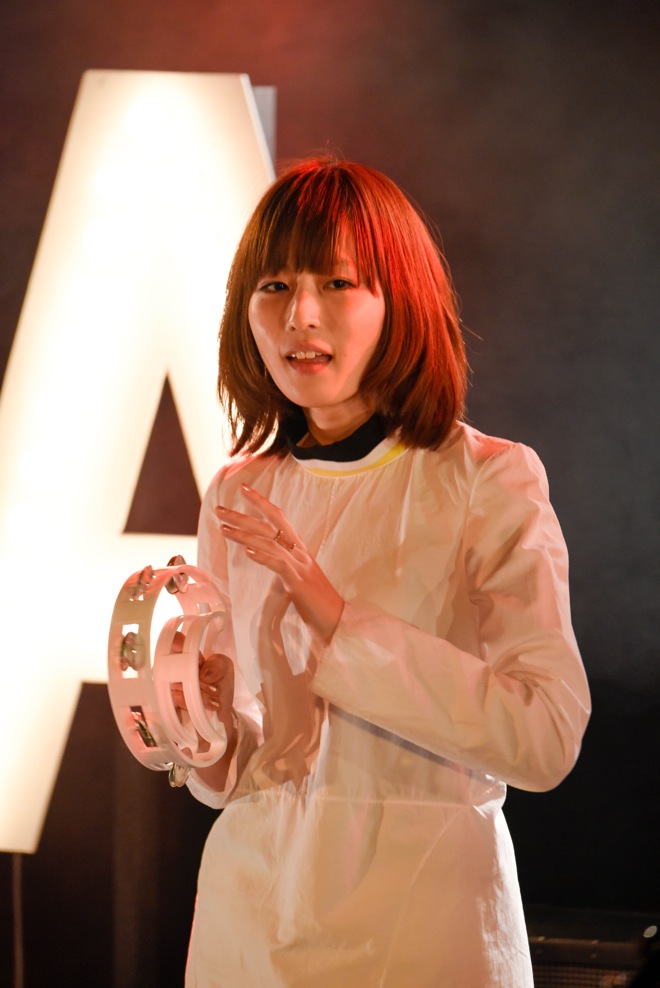 この日のパーティーを締めくくるにふさわしい華やかさで会場を魅了したAwesome City Club。 シンセポップ、チルウェイヴ、ソウル、R&Bなど、実にさまざまなジャンルの要素をポップスという フィルターを通してカラフルに昇華した楽曲たちで会場を満たしていく。途中、クラウドファウンディング限定でリリースする新曲「アウトサイダー」「Pray」を披露。 どちらも、一度聴いたら耳から離れない印象的なギターフレーズとatagi(Vo,Gu)、PORIN(Vo,Syn)、モリシー(Gu,Syn,Cho)、3人による変幻自在なハーモニーが非常に心地よい。MCでは、PORINが9月にセカンドアルバムをリリースすることを発表し、歓声が上がる。そして早速、その中から「WAHAHA」を演奏した。彼らはアンコールでもさらに、アルバムからの新曲「GOLD」を披露。ACC色が今まで以上に色濃く滲み出た楽曲で、彼らのさらなる快進撃を予感させるものであった。そして〈今日のラストシーン 響くファンファーレ〉という歌詞にふさわしい、キラキラとした余韻を残してイベントを締めくくったのだった。