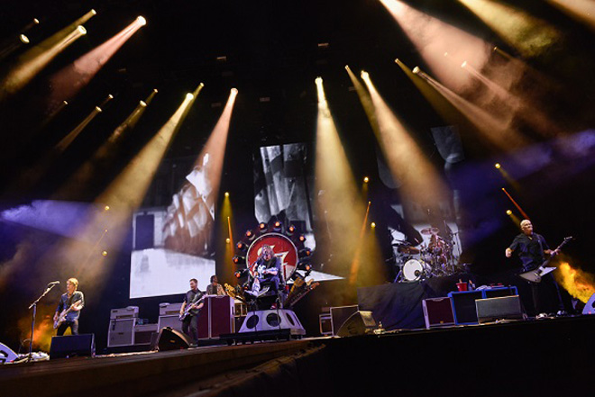 フー・ファイターズが、<フジロック・フェスティバル2015>の初日7月24日(金)にヘッドライナーとして登場、2時間にも及ぶパフォーマンスで、会場を埋め尽くした32,000人のオーディエンスを熱狂の渦に巻きこんだ。