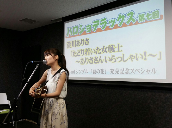 7月24日(金)、瀧川ありさがハロー!ショップ秋葉原店で行われたトークショー<ハロショ・デラックス 第七回 2ndシングル「夏の花」発売記念スペシャル瀧川ありさ「たどり着いた女戦士 ~ありささんいらっしゃい!~」>に出演、軽快かつマニアックなハロプロトークを炸裂させた。
