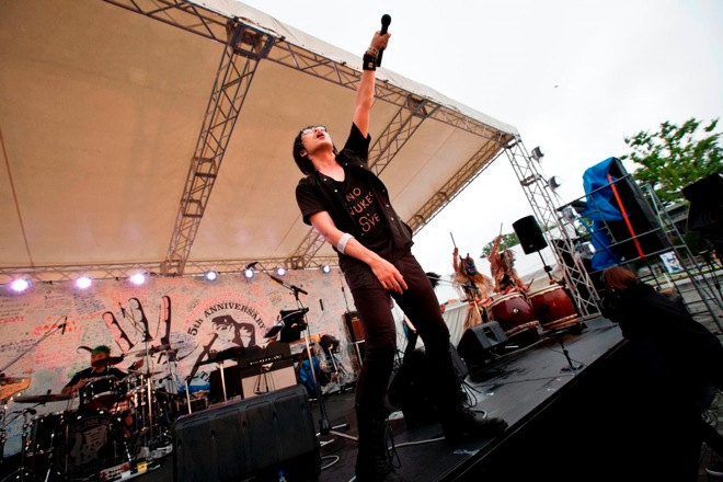 高橋優、地元秋田の5,000人フリーライブでなまはげと共演。