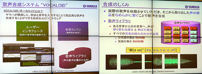 ▲ライブラリの制作には声が移り変わる部分と伸ばす部分などすべての音素の組み合わせが必要。日本語では500個、英語では2500個が必要となる。
