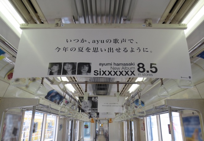 8月5日にアルバム『sixxxxxx』をリリースする浜崎あゆみ。リリースの2日前となる8月3日より、東京メトロの3路線ではayuの中づり広告ジャックが展開されている。