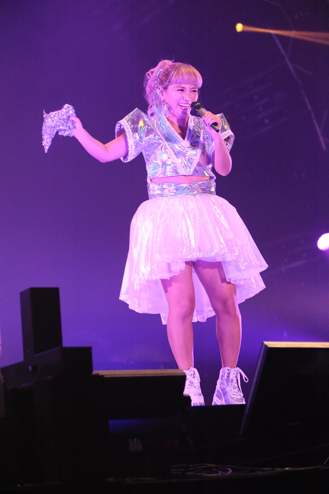 GENERATIONS from EXILE TRIBEで一気に会場の空気がヒートアップした後、一転、しっとりと登場したのはMINMI。ダンサーを引き連れ、ゆったりとセクシーに「サマータイム」の序盤を迫力の声量で歌いあげていく。サビで一気に曲のテンションが上がると同時に、会場も恒例のタオル回し! MCでは、「さぁココからはMINMIの時間やで~!」と、とたんに関西弁むき出しに。「#ヤッチャイタイ」で見せた、観客たちを笑わせながら会場の一体感を作り出してしまう姿はまさに生粋のエンターテイナー。ラストの「Lotta Love」では再びVERBALが登場し、息ぴったりの掛け合いで観客たちを沸かせた。