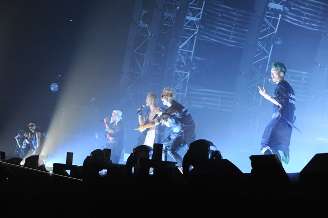 続いてスクリーンにはストリート感溢れるダークなダンス映像が。EXILEのパフォーマー、SEKAI擁するダンスクルー、XXIV CLANだ。気になったのは、その至極シンプルな衣装。キャップに白いTシャツという、まるでダンスバトルやクラブで踊っているようなラフな出で立ち。対するダンスパフォーマンスはド派手に大技をキメ、重力を無視しているかのようなフロアワークには会場からはどよめきが漏れる。“本気でダンスを魅せに来た”、そう感じさせる硬派なステージングだった。