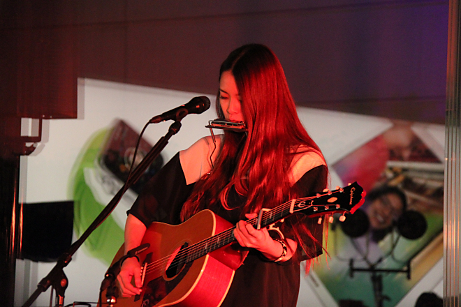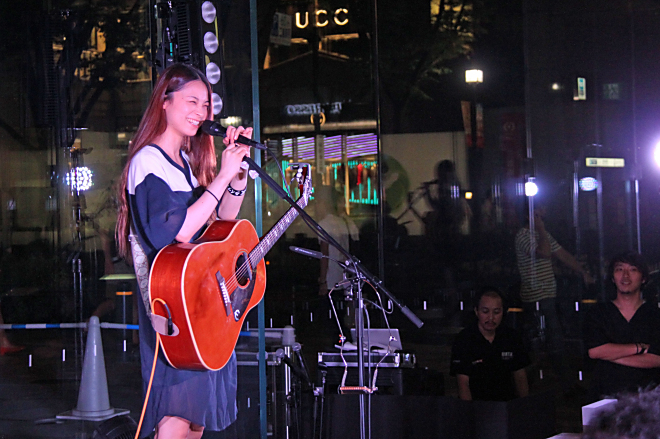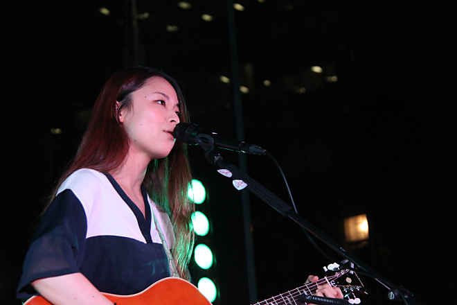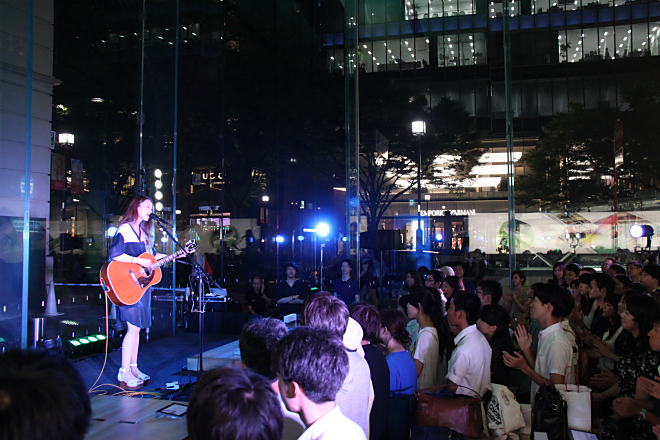 自身のメジャーデビュー2周年記念日の前日でもあるこの日、ガラス張りのApple Store店内にはフリーライブを見に来た観客で後ろまで一杯に。前方のステージに登場した片平里菜は8月26日発売のニューシングルから「サマーキャンプ」を披露。アコースティックギターとブルースハープを使っての甘さを含んだハスキーな歌声で会場を包み込んだ。