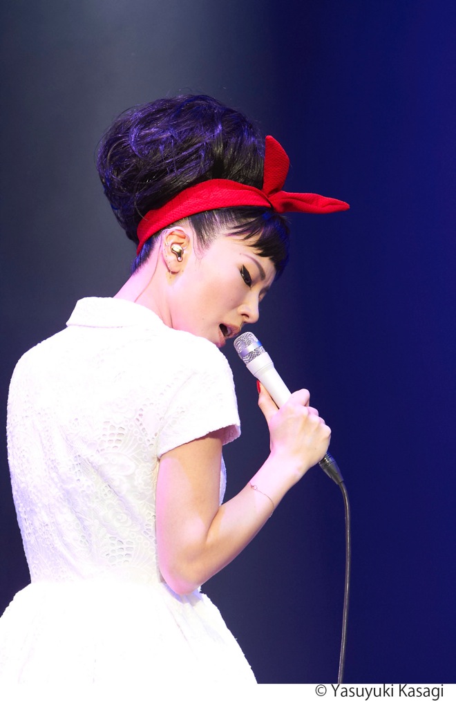 さて、2015年の邦楽勢のハイライトのひとつが、椎名林檎だった。椎名林檎含めステージ上の全員がレトロな白い衣装というコンセプチュアルな景色からして、登場時より一瞬でオーディエンスの心をつかんでいた。英語詞の「丸の内サディスティック」のとびきりの妖艶さ、腰を思い切り曲げしゃがみ込むように歌った「罪と罰」の切実さ。“声色”という言葉に合点がいくような、めくるめく歌唱のバラエティ。そして、その美しい一挙手一投足。頭のテッペンからつま先まで神経の行き届いたその立ち振舞いまでもが、120パーセント、ここに来た私達オーディエンスに向けて丹念に練り上げ創りあげられた産物なのだということがわかる。ため息モノだ。椎名林檎がグッとパフォーマンスに集中すればするほど、オーディエンスも息を飲む。とても幸せな構図を描いていた。