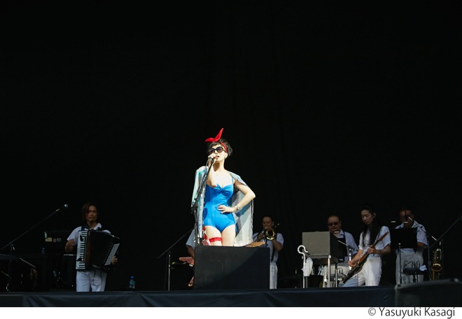 音響のよさで定評のあるWHITE STAGEでも、名ステージが多かった。前述のトッド・ラングレンの直前、同じWHITE STAGEに立ったのがceroだ。彼らは2011年にROOKIE A GO-GOに出演し、そのライブが認められ、翌年にはHEAVENに登場、そして今年という出演ストーリーを描いている。本当に目が痛くなるほどに太陽が照りつけていた頃、12時40分からステージは始まった。特に「マイ・ロスト・シティー」がそうだったが、いつにも増してceroのブラックなビートが灼熱の中で本能に身を任せて目をギラつかせてるようだった。とってもスリリング。そのハイクオリティーな音楽的狂騒に、いくら身体から汗が吹き出てこようとも、その場から離れられなかった。