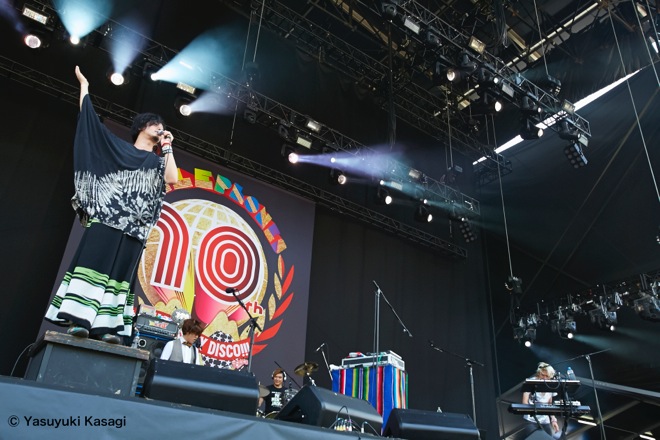 実際に、彼らがこのタイミングで今回の晴れ舞台に立ったことは、きっと多くの音楽ファンにとって喜ばしい出来事だったと思う。2000年代後半から邦楽シーンを着実に盛り上げてきたthe telephonesだからこそ、受けられた大役の代打であった。ステージの中央に掲げられた「10th ANNIVERSARY DISCO!!!」のフラッグも、そこに堂々と誇らしげに存在して見えた。