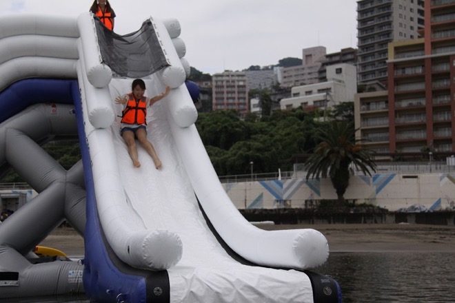 日本最大級のビーチアスレチックをスタマリ木下望と中根礎子がPR。「いつかライブもできたら」